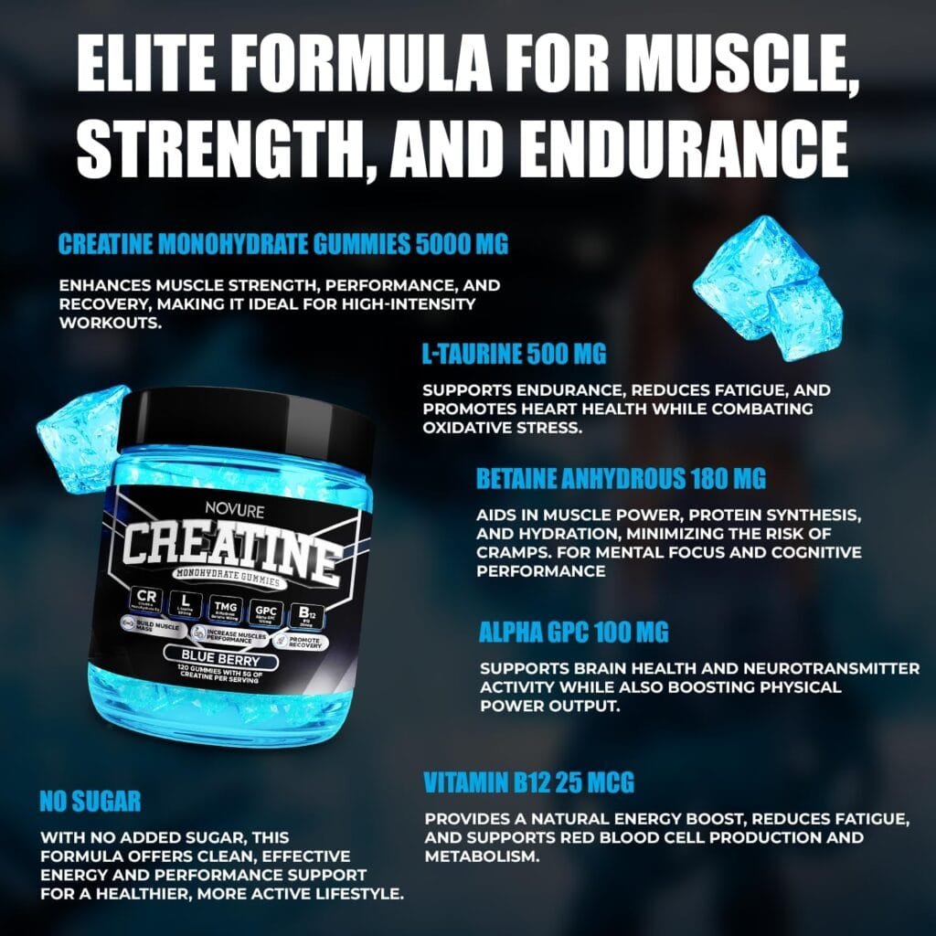 Are you looking to enhance your muscle growth and strength? Meet Novure, the game-changing 5000mg creatine monohydrate gummies designed specifically for men. These delicious gummies not only make it easier to supplement your diet, but they also ensure you stay motivated in your fitness journey.