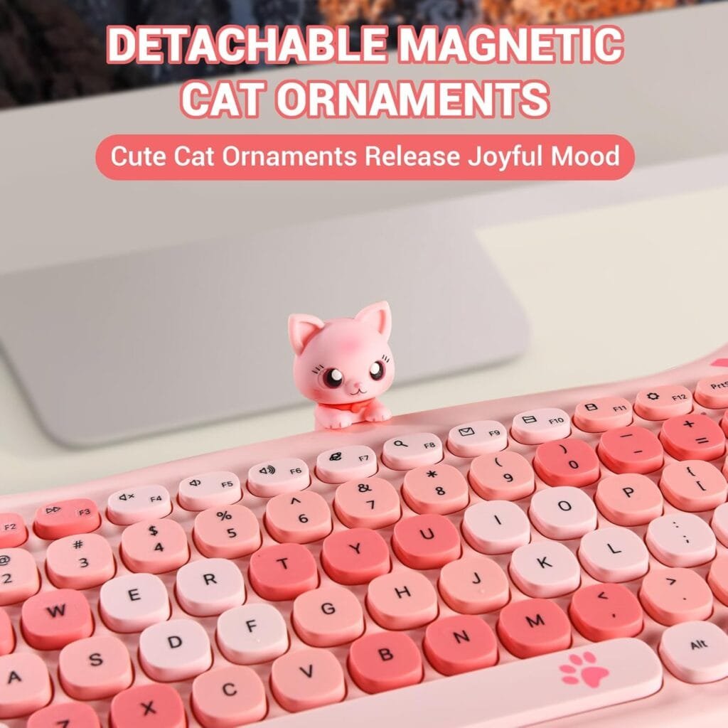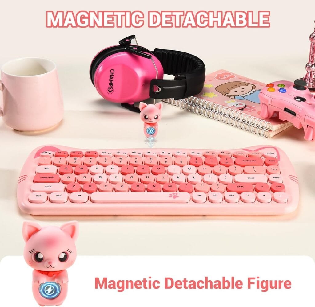 • -Magnetic Cat Design : Exclusive removable magnetic cat figure sits on top of the keyboard, adding a playful and stress-…